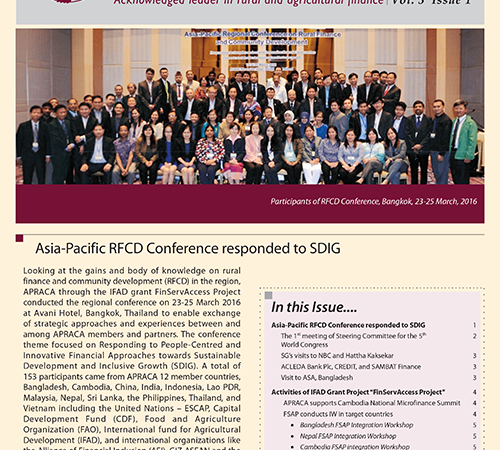 Asia-Pacific RFCD Conference responded to SDIG – The 1st meeting of Steering Committee for the 5th World Congress – SG’s visits to NBC and Hattha Kaksekar – ACLEDA Bank Plc, CREDIT, and SAMBAT Finance – Visit to ASA, Bangladesh Activities of IFAD Grant Project “FinServAccess Project” – Phase-2 of RuFBeP Project : Pilot