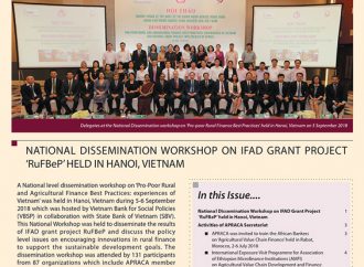 Nationa l Dissemination Workshop on IFAD Grant Project 1 ‘RuFBeP’ held in Hanoi, Vietnam Activities of APRACA Secretariat APRACA was invited to train the African Bankers on ‘Agricultural Value Chain Finance’ held in Rabat, Morocco, 2-6 July 2018 International Exposure Visit Programme for Association of Ethiopian Microfinance Institutions (AMFI) on Agricultural Value Chain Development and