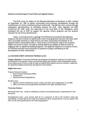 National Livelihood Support Fund Profile and Flagship Project