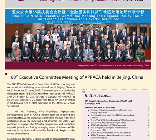 68th Executive Committee Meeting of APRACA held 1 in Beijing, China Activities of APRACA Secretariat – Regional Policy forum on ‘Financial Services and Poverty Reduction’ – Secretary General was in Lao PDR to train the Bank Officials – Visit of NAFSCOB, India Team to APRACA Secretariat 3 s Visit of FAO Officials from RAP and