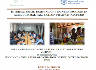 Read more : Apraca Invitation ToT Morocco English Read more : Logistic Note 2 Read more : NOMINATION FORM REGISTER FOR OUR UPCOMING EVENTS!!! Event Date Location 1. Afraca Risk-Sharing Policy Conference alongside twin trainings; The International Training of Trainers programme in Agricultural Value Chain Finance (AVCF) for Anglophone and