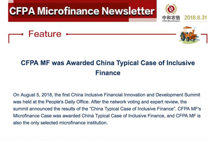 CFPA MF was Awarded China Typical Case of Inclusive Finance