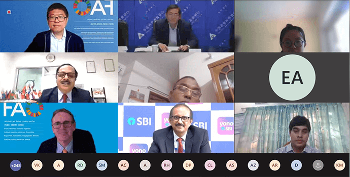 Distinguished speakers from the State Bank of India, Agricultural development Bank of China and FAO during CABFIN-APRACA Webinar on Digital Finance to smallholder farmers and Agri-SMEs.