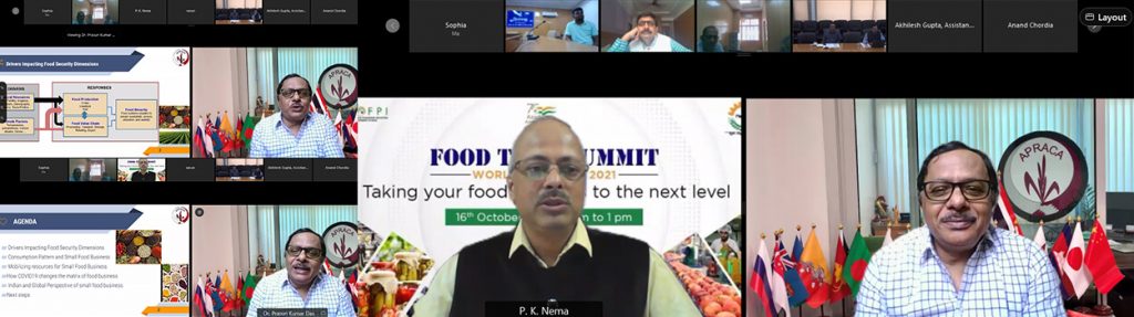 Dr. Prasun K Das, APRACA Secretary General was invited as the key speaker for the ‘Food Tech Summit’ on World Food Day 16 October 2021 organized by Ministry of Food Processing Industries, Govt. of India.