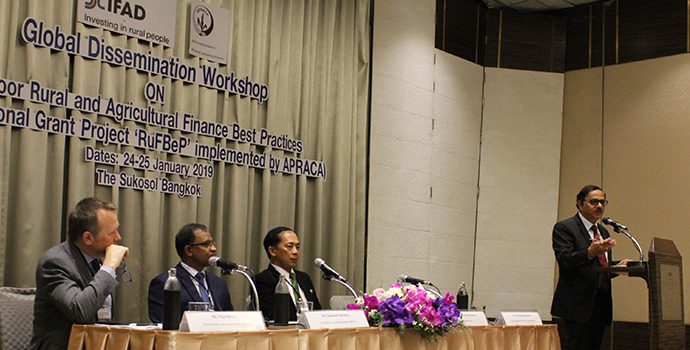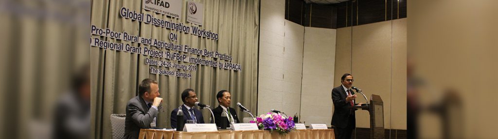 Dr. Prasun Kumar Das, APRACA Secretary General welcomed the delegates and delivering vote of thanks during the IFAD-APRACA Global dissemination workshop on 25 January 2019.