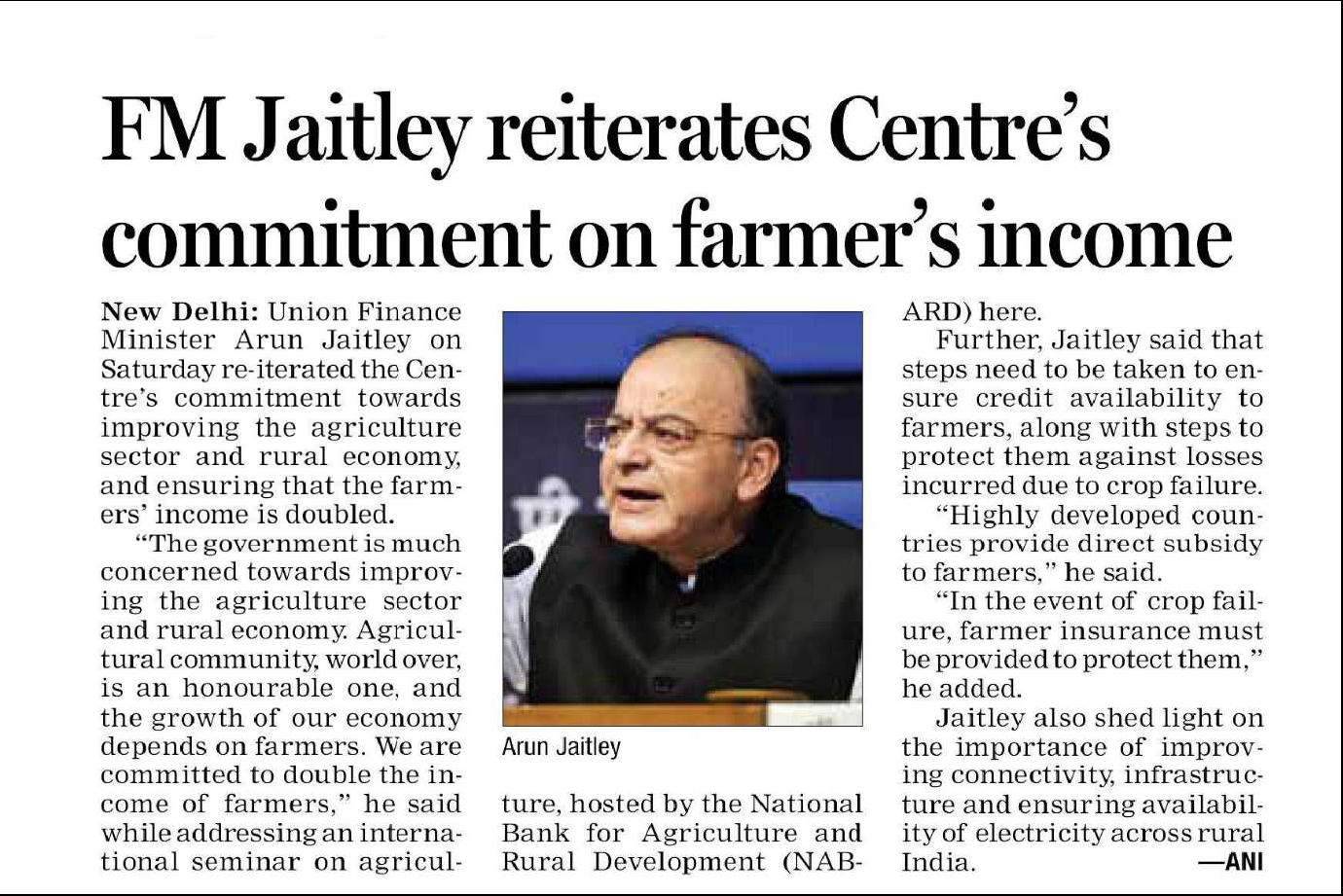 FM Jaitley reiterates Centre’s commitment on farmer’s income