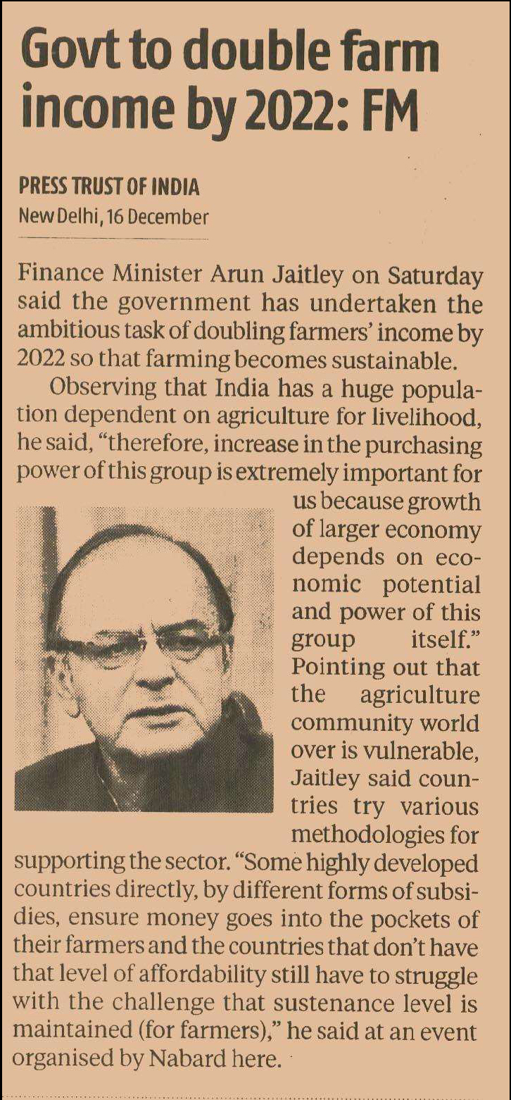 Govt to double farm income by 2022: FM