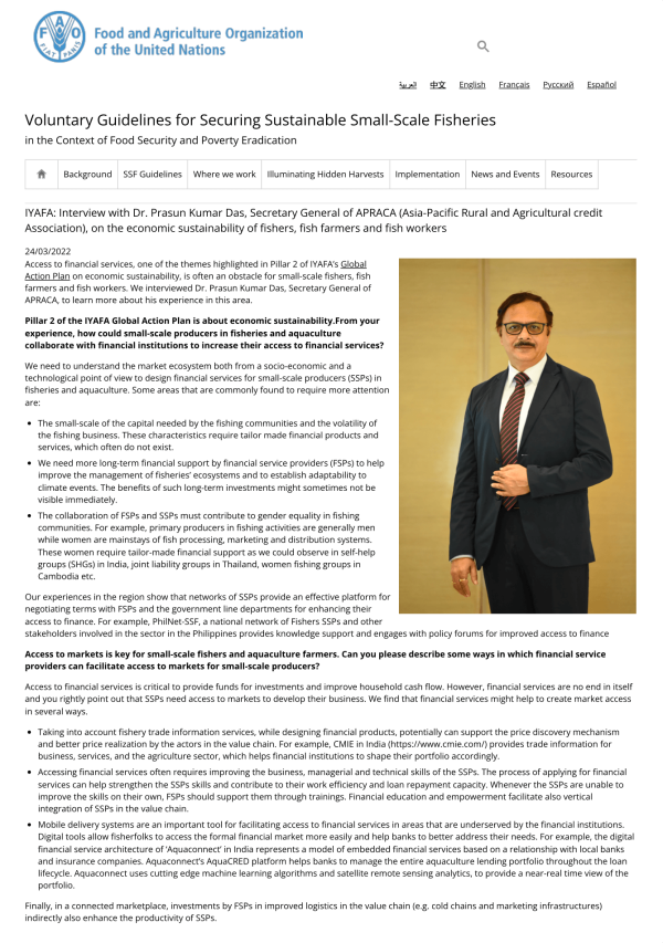 APRACA–FAO Expert Workshop on Broad-based Reporting Requirements on Credit to Agriculture, Forestry, Fisheries and Aquaculture