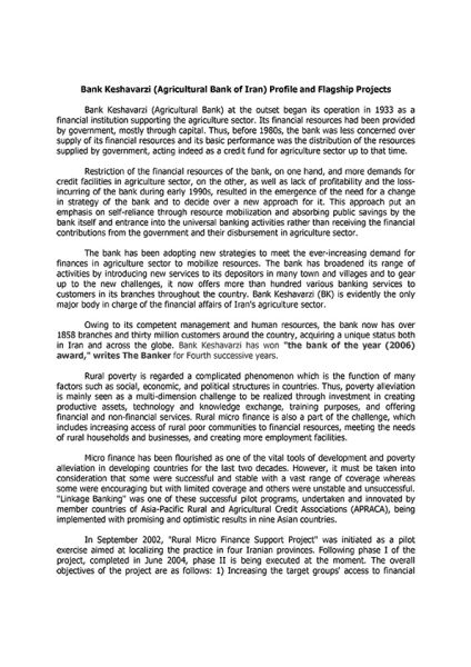 Bank Keshavarzi (Agricultural Bank of Iran) Profile and Flagship Projects