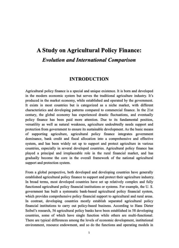 A Study on Agricultural Policy Finance: Evolution and International Comparison